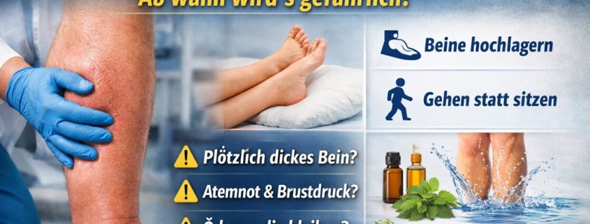 Wenn ein Bein innerhalb weniger Stunden deutlich anschwillt, spannt oder schwer wird, ist das kein „ich war halt viel unterwegs“.